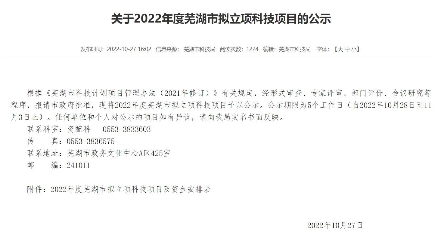 ? ? ? ? ?10月27日,芜湖市科学技术局公布了2022年度芜湖市拟立项科技项目名单。安徽乐玩lewin官网凭借基于信创环境下的运营感知管理平台项目榜上有名。