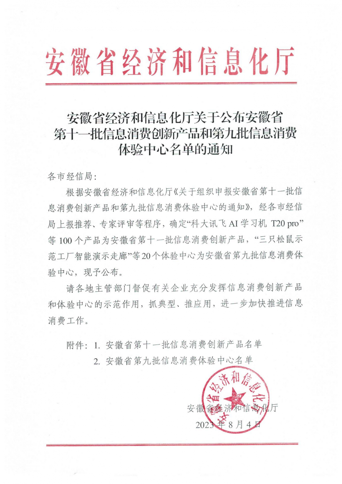 ? ? ? 8月4日,安徽省经济和信息化厅发布了“安徽省第十一批信息消费创新产品和第九批信息消费体验中心”名单,安徽乐玩lewin官网信息技术有限公司的数据安全治理协同平台成功入选《安徽省第十一批信息消费创新产品》。