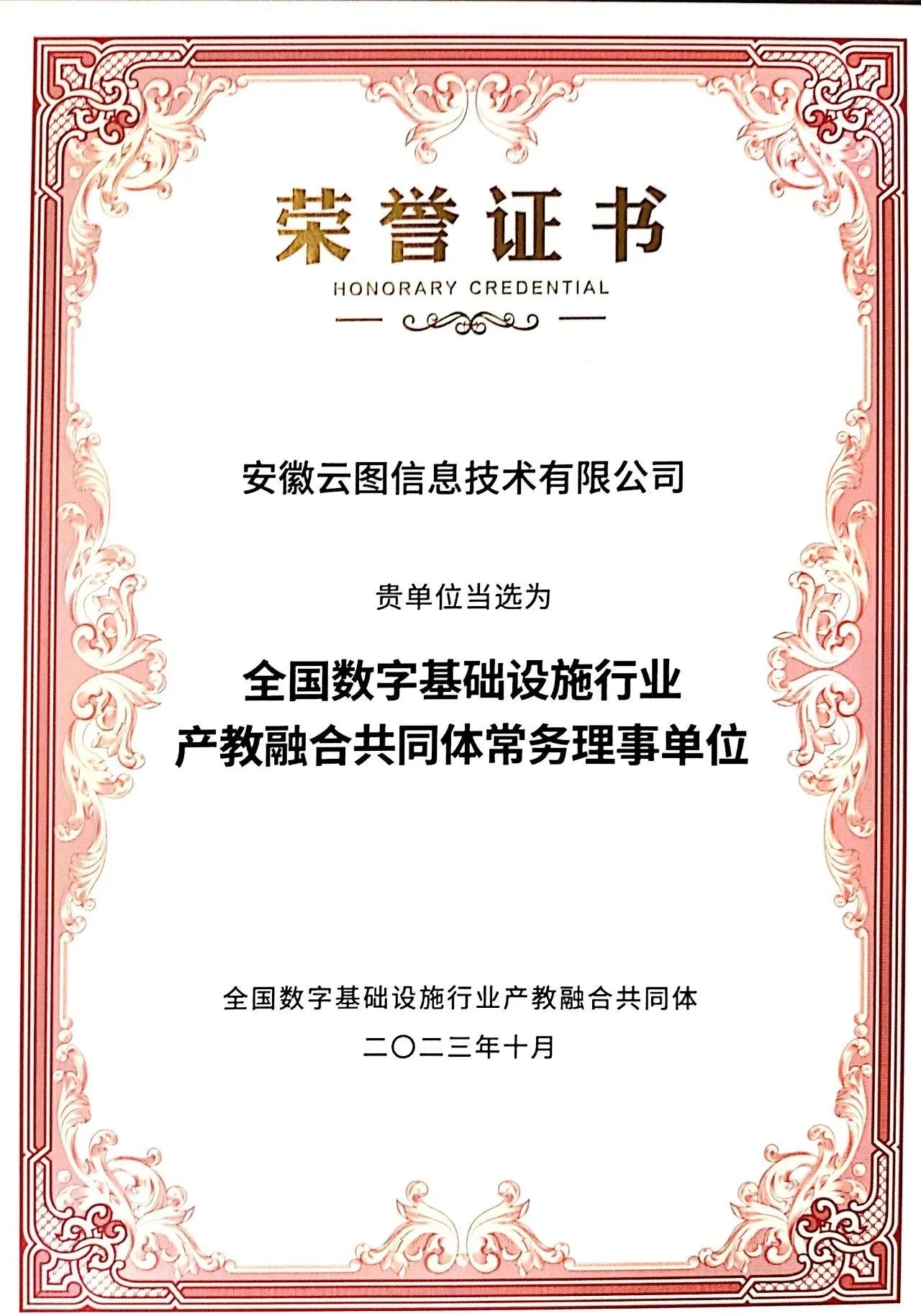 10月15日,由工业和信息化部教育与考试中心、工业和信息化部人才交流中心、安徽省教育厅、芜湖市人民政府指导,浪潮云洲工业互联网有限公司、山东大学、芜湖职业技术学院共同牵头主办的“全国数字基础设施行业产教融合共同体”(以下简称共同体)成立大会在芜湖召开,安徽乐玩lewin官网信息技术有限公司受邀参加此次大会并当选为常务理事单位。